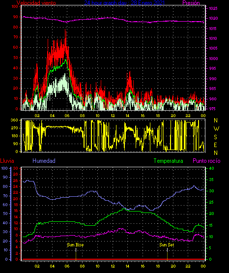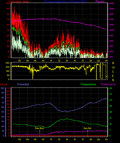 Ràfega màxima vent................. = 70.3 kmh de 293°(WNW) ..dia 23 ,hora 00:02
