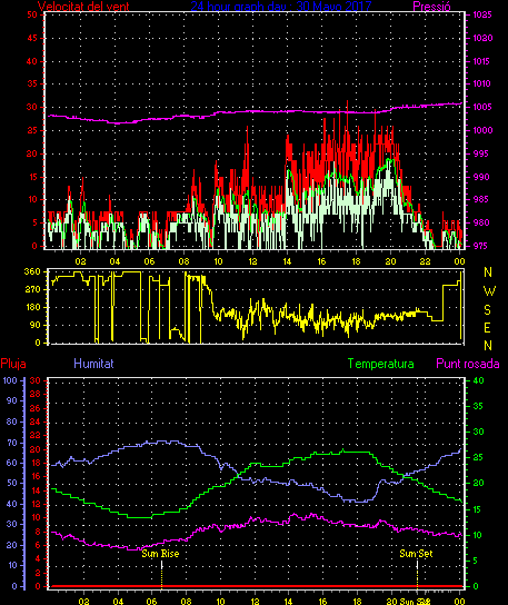 Veloc.màx ràfega................... = 31.5 km/h de 113°(ESE) ..dia 30 ,hora 17:30