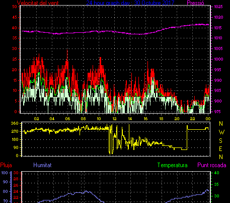 Veloc.màx ràfega................... = 29.6 km/h de 293°(WNW) ..dia 30 ,hora 05:54