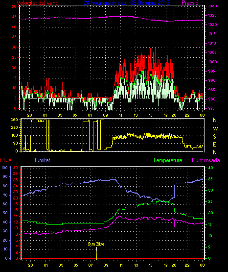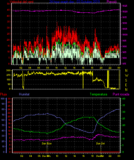 Veloc.màx ràfega................... = 35.2 km/h de 293°(WNW) ..dia 03 ,hora 10:07